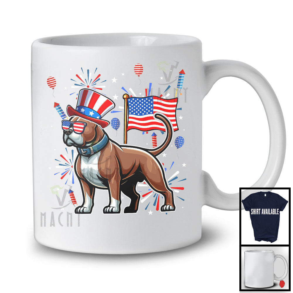 • Pit Bull With American Flag Fireworks, Awesome 4th Of July Pit Bull Lover, Patriotic Group T-Shirt. This cotton t-shirt is a durable staple product with a classic fit. One of the most popular items, it has a relaxed style made for everyday and casual wear.