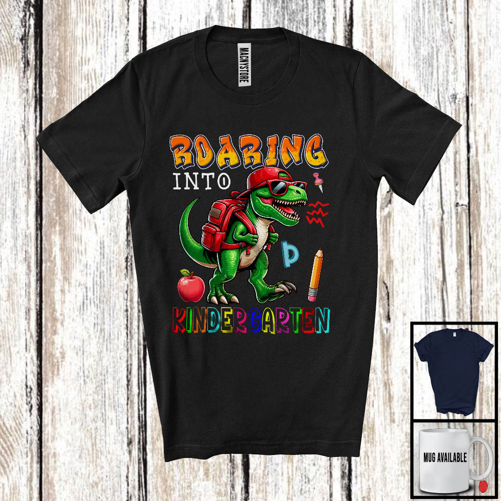 Roaring Into Kindergarten, Humorous Back To School T-Rex Dinosaur, Matching Student Group T-Shirt