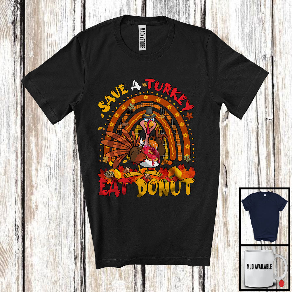 new MacnyStore - Save A Turkey Eat Donut; Humorous Thanksgiving Fall Leaf Rainbow Turkey; Donut Food Lover T-Shirt – Macnystore