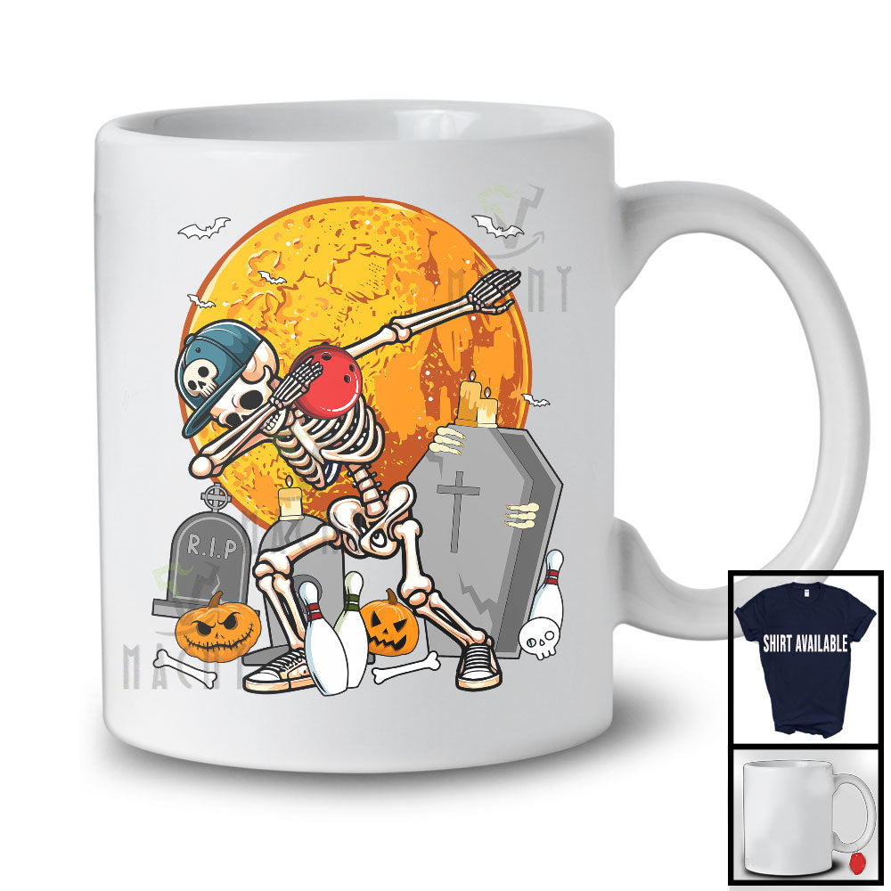 Skeleton Dabbing Bowling Player, Joyful Halloween Costume Sports Playing Team, Family Group T-Shirt