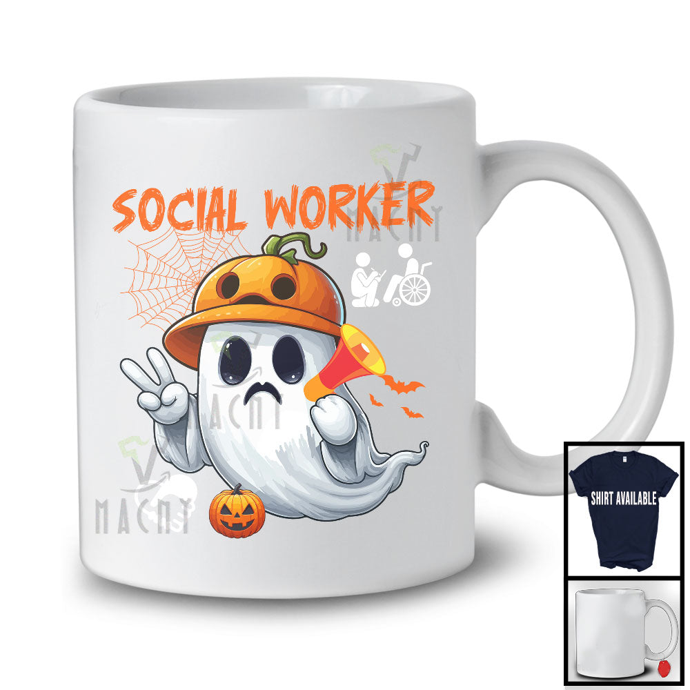 Social Worker; Humorous Halloween Costume Ghost Boo Lover; Matching Careers Jobs Group T-Shirt. This cotton t-shirt is a durable staple product with a classic fit. One of the most popular items, it has a relaxed style made for everyday and casual wear.