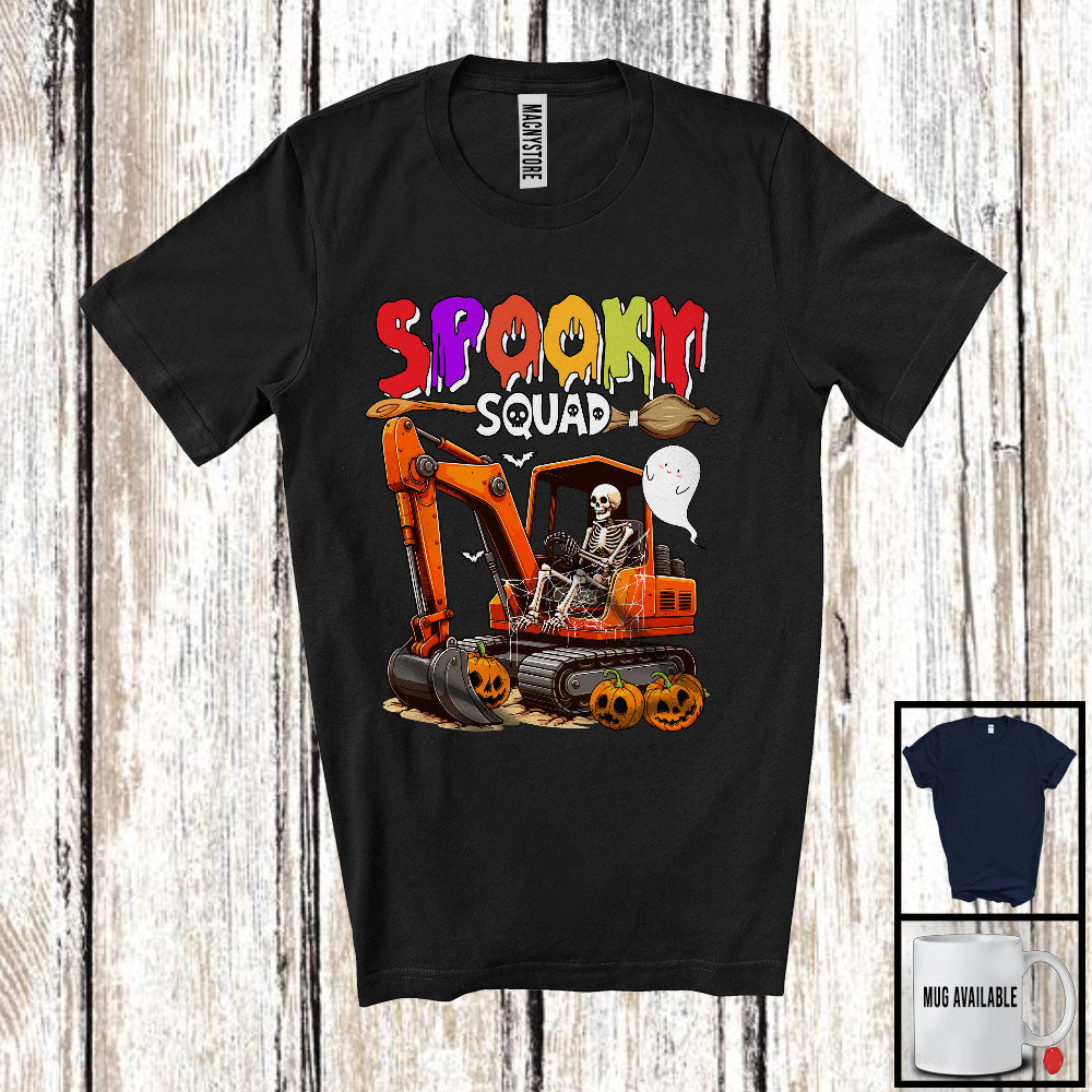 Spooky Squad; Horror Halloween Skeleton Driving Excavator; Boo Pumpkin Candy Excavator Driver T-Shirt