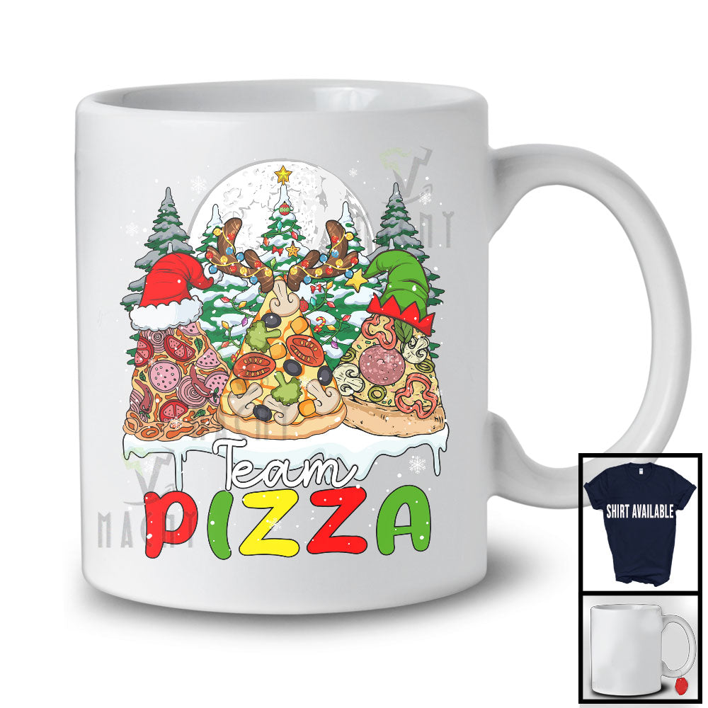 Team Pizza, Lovely Christmas Three Santa ELF Reindeer Pizza, Matching X-mas Food Lover T-Shirt