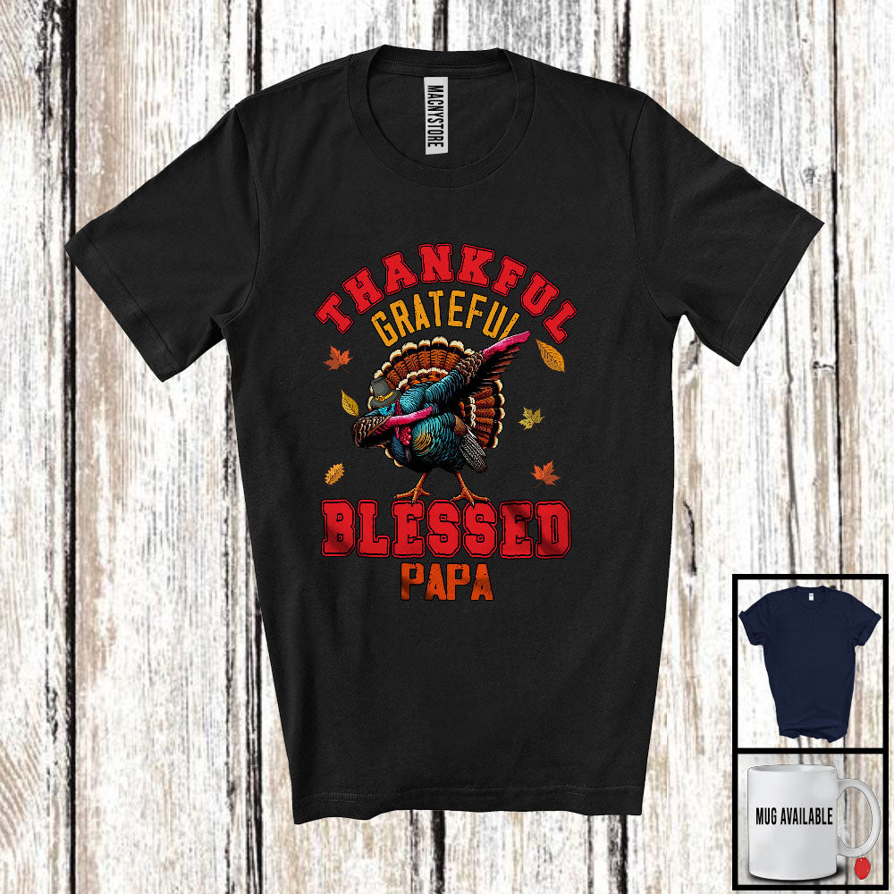 Thankful Grateful Blessed Papa; Amazing Thanksgiving Dabbing Turkey; Fall Leaves Family T-Shirt