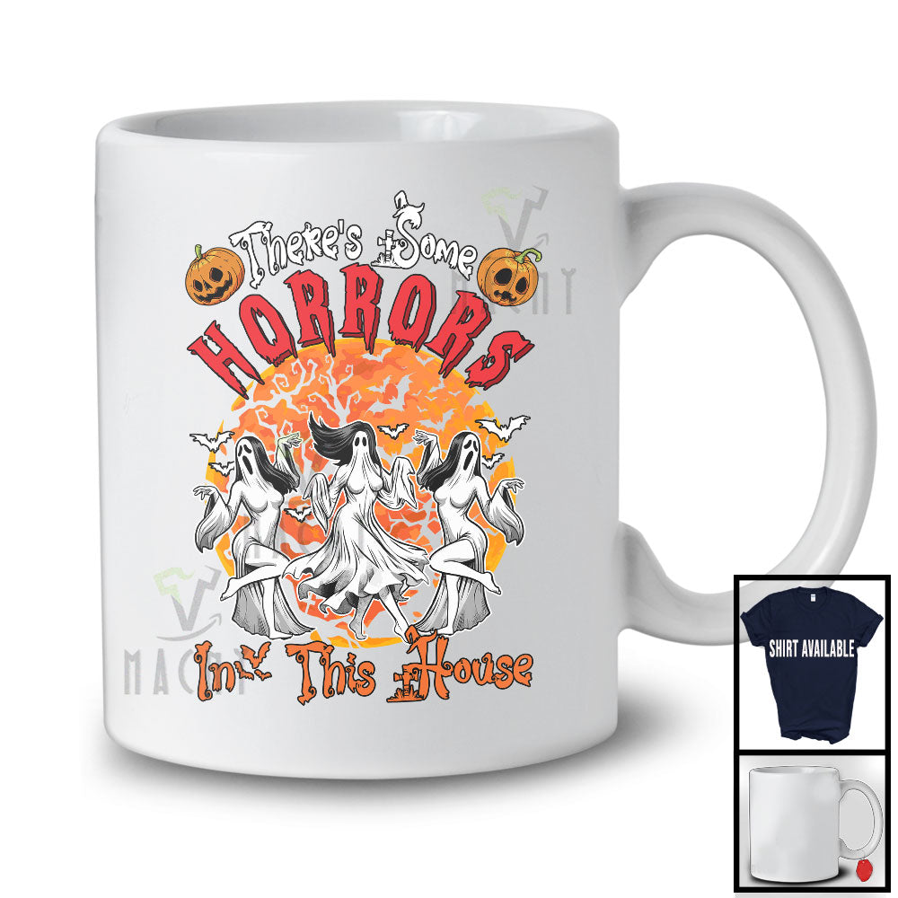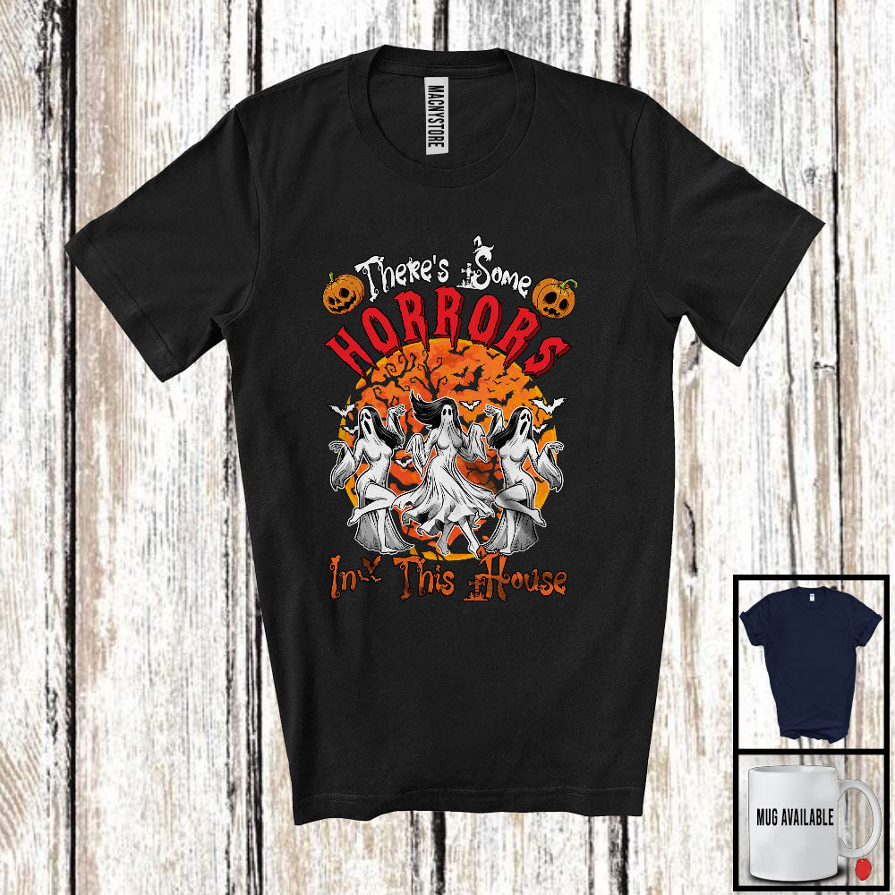 new MacnyStore - There's Some Horrors In This House; Humorous Halloween Moon Boo Ghost; Women Family T-Shirt – Macnystore