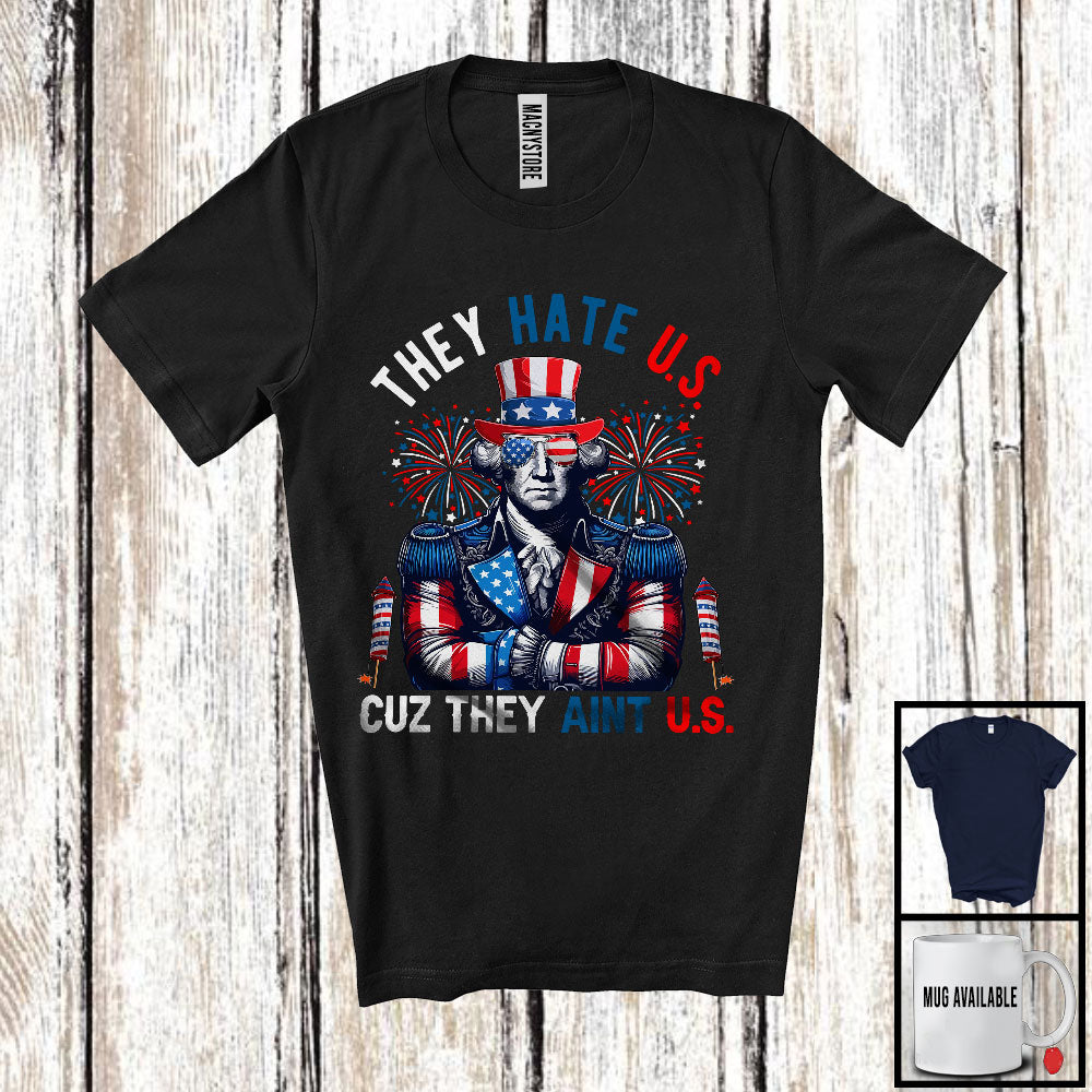 They Hate US Cuz They Ain't US, Sarcastic 4th Of July American Flag Fireworks President, Patriotic T-Shirt