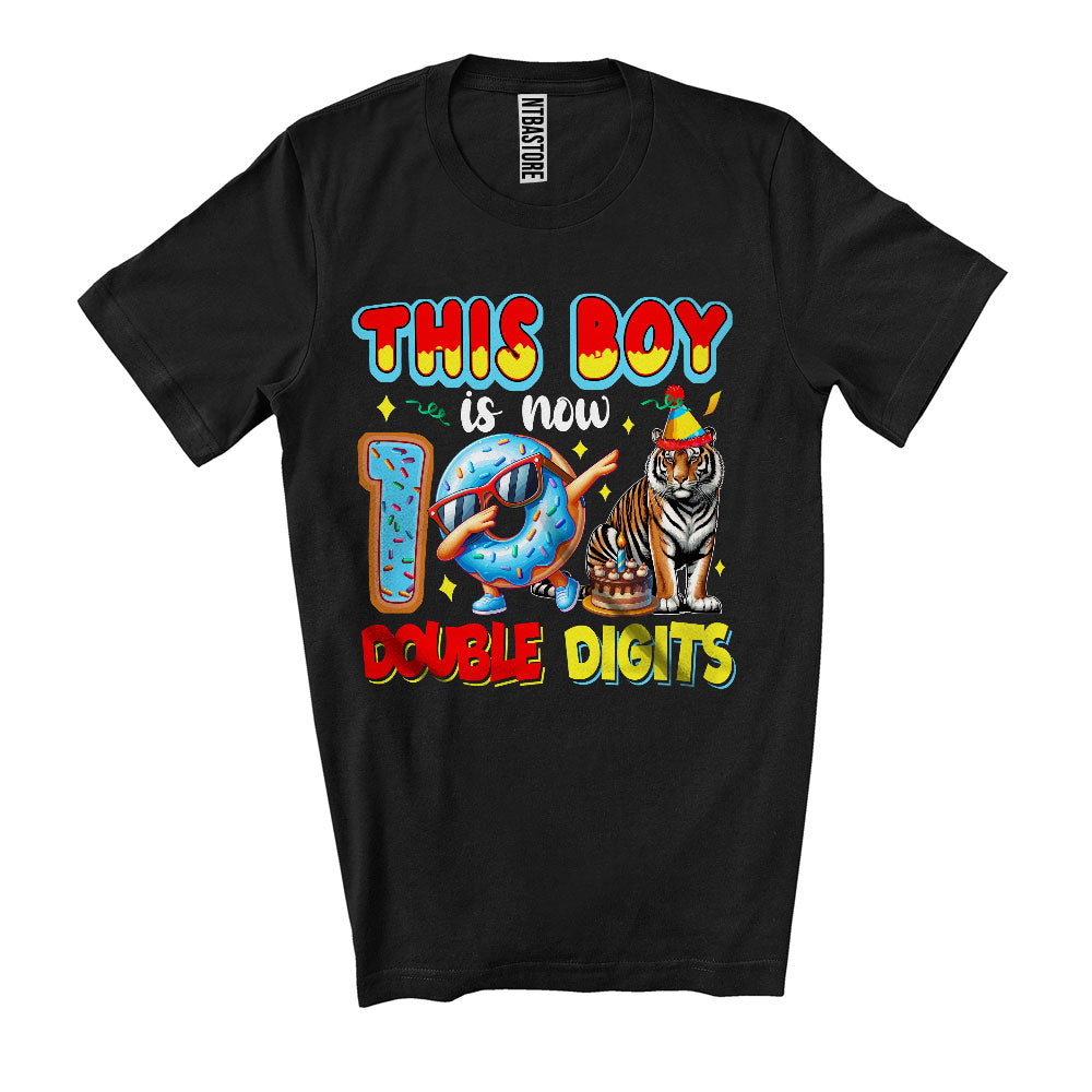 This Boy Is Now 10 Double Digits, Adorable 10th Birthday Tiger Dabbing Donut, Wild Animal T-Shirt