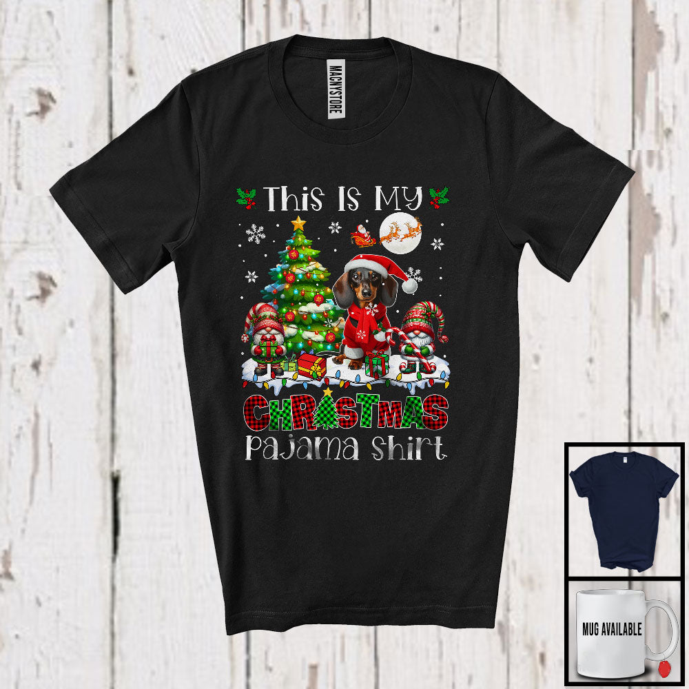 This Is My Christmas Pajama Shirt, Adorable X-mas Santa Dachshund Plaid, Gnome Snowing T-Shirt. This cotton t-shirt is a durable staple product with a classic fit. One of the most popular items, it has a relaxed style made for everyday and casual wear.