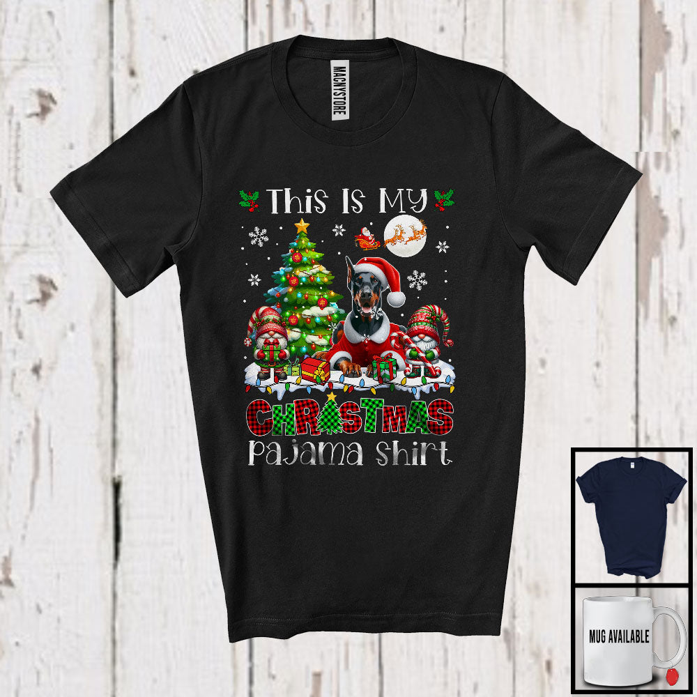 This Is My Christmas Pajama Shirt, Adorable X-mas Santa Dobermann Plaid, Gnome Snowing T-Shirt