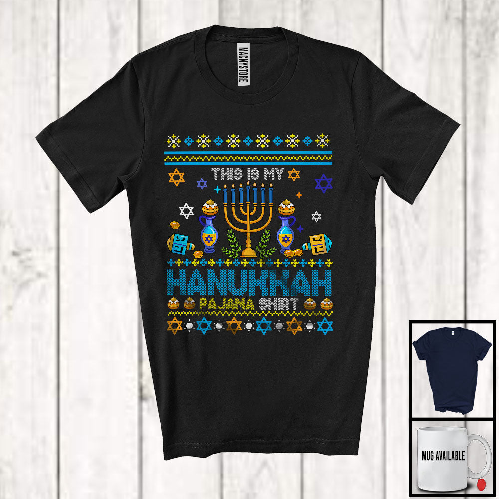 This Is My Hanukkah Pajama Shirt; Awesome Chanukah Sweater Menorah Light; Pajama Family T-Shirt. This cotton t-shirt is a durable staple product with a classic fit. One of the most popular items, it has a relaxed style made for everyday and casual wear.