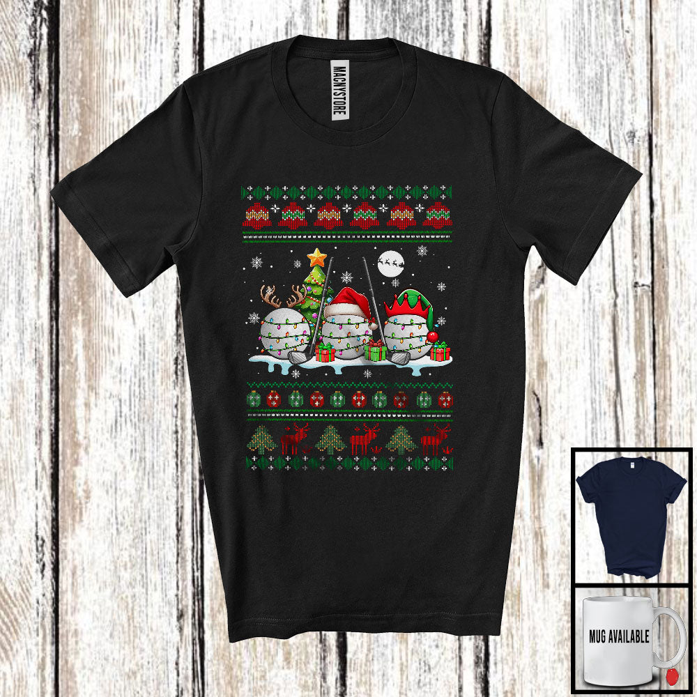 Three Santa Elf Reindeer Golf; Cheerful Christmas Tree Sweater Snow; Sport Player Family T-Shirt