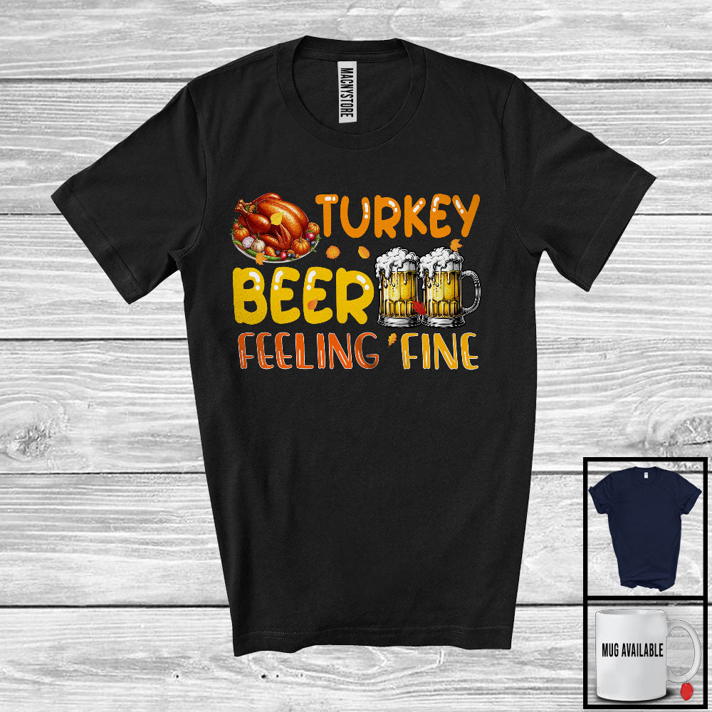 Turkey Beer Feeling Fine; Sarcastic Thanksgiving Family Dinner Turkey; Beer Drinking Drunker T-Shirt