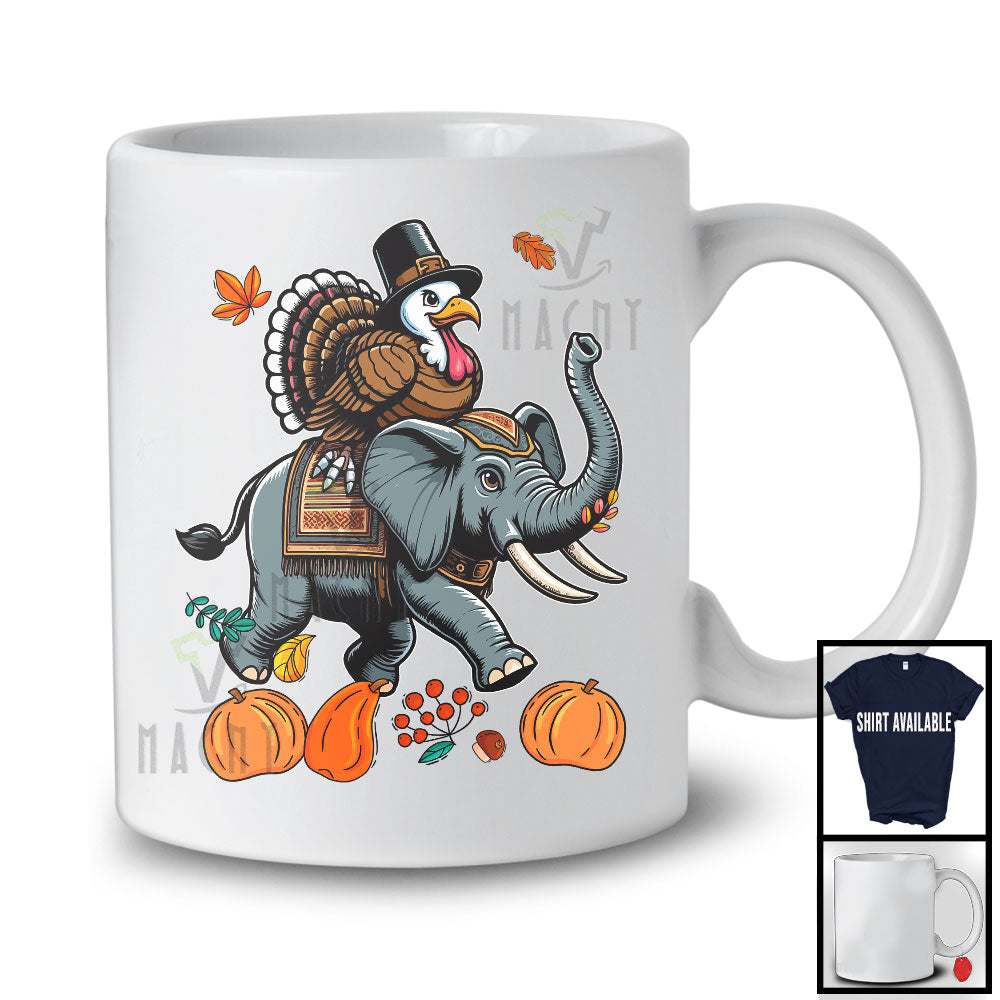 Turkey Riding Elephant, Wonderful Thanksgiving Turkey Elephant Fall Leaves, Animal Lover Family T-Shirt. This cotton t-shirt is a durable staple product with a classic fit. One of the most popular items, it has a relaxed style made for everyday and casual wear.