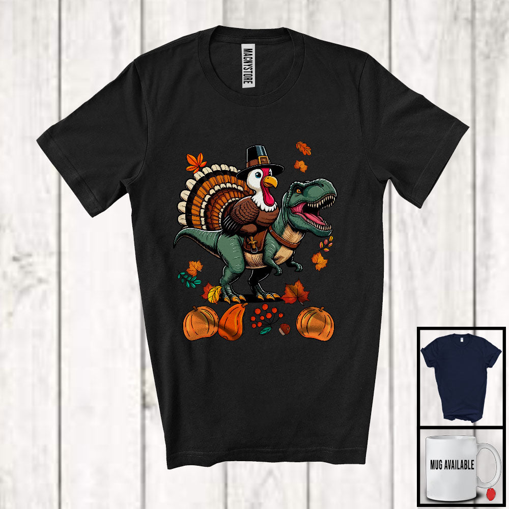 Turkey Riding T-Rex, Wonderful Thanksgiving Turkey T-Rex Fall Leaves, Animal Lover Family T-Shirt