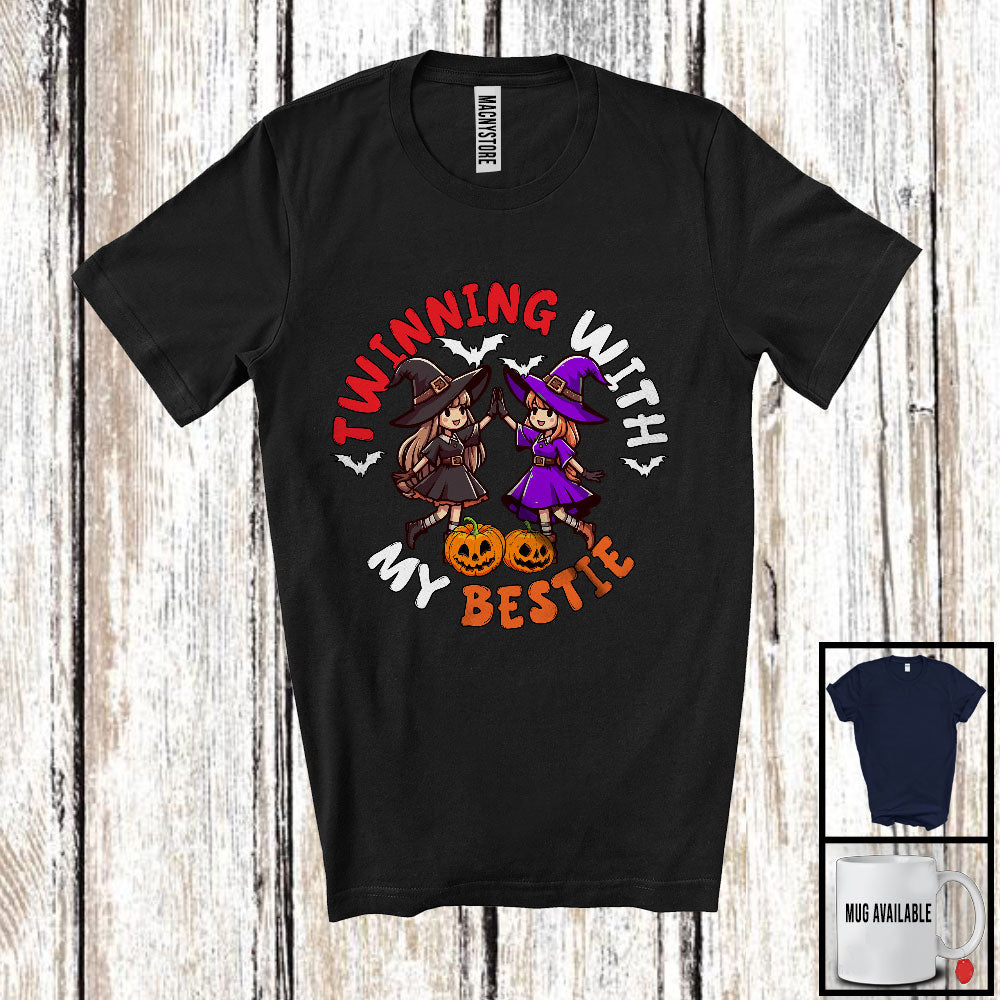 This Twinning With My Bestie; Humorous Halloween Costume Twin Witch; Friends Family Group T-Shirt is great idea gift for your family, friends in this birthday, christmas, mother's day, father's day, patrick's day or any holiday.