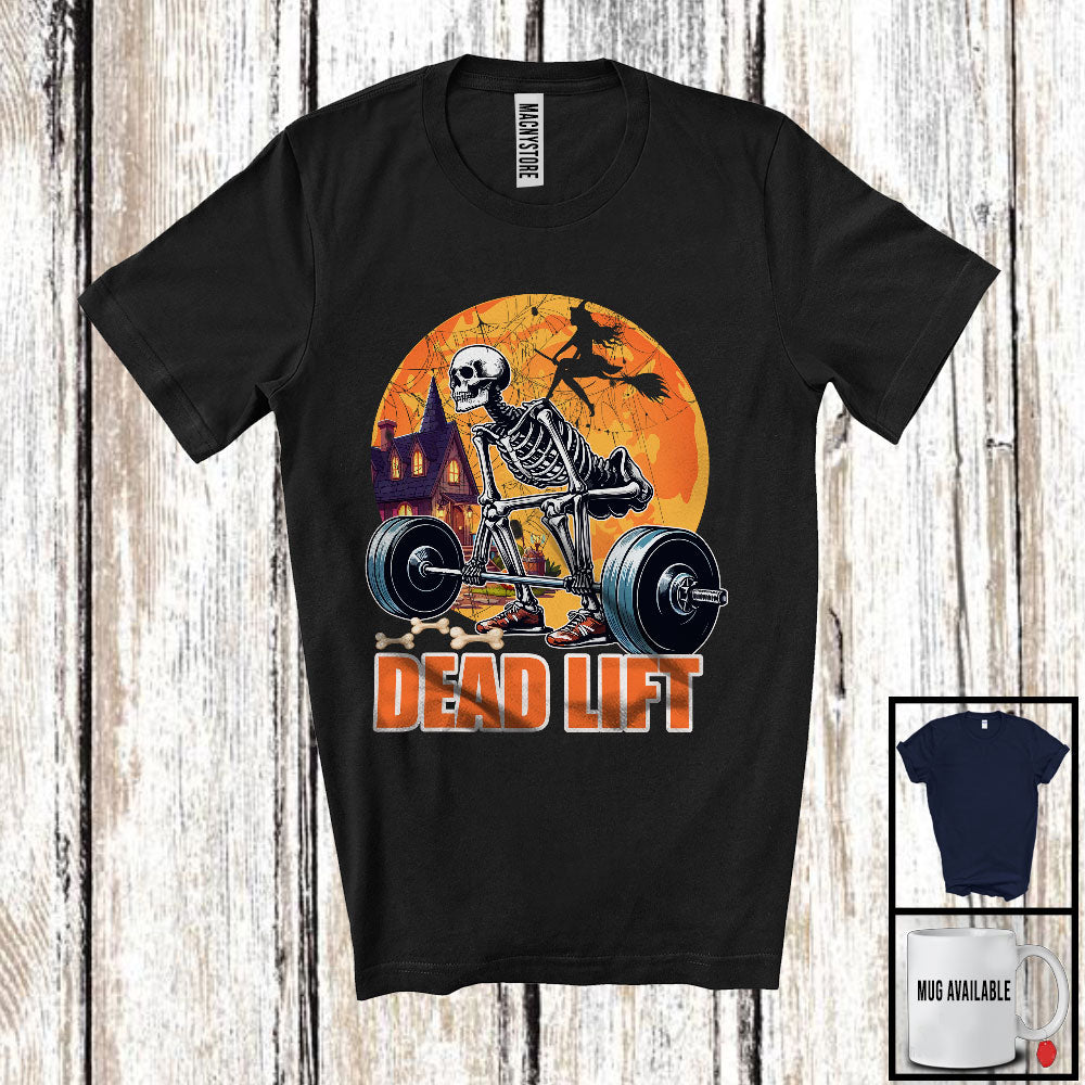 Vintage Halloween Skeleton Weightlifting Dead Lift Funny Lifting Weights Gym Love T-Shirt. This cotton t-shirt is a durable staple product with a classic fit. One of the most popular items, it has a relaxed style made for everyday and casual wear.
