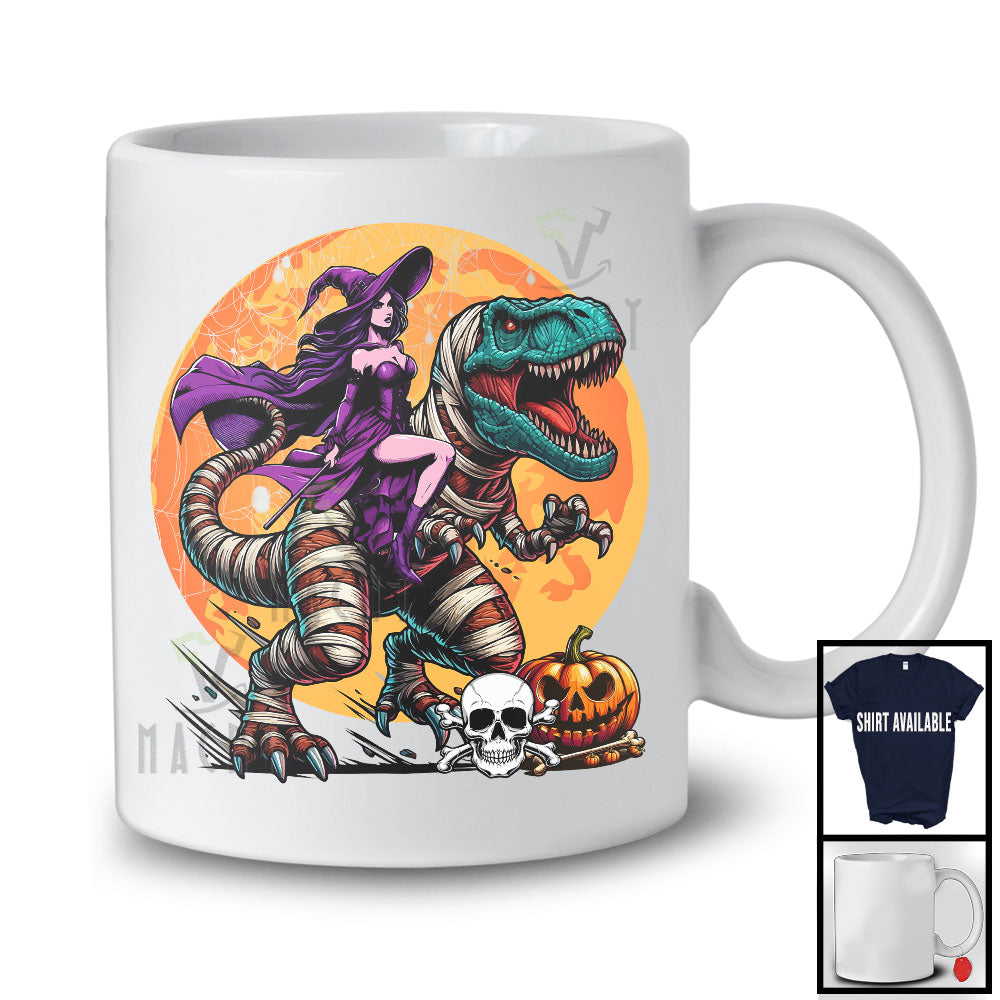 new MacnyStore - Witch Riding T-Rex Mummy, Humorous Halloween Dinosaur Pumpkin, Trick Or Treat Candy T-Shirt – Macnystore