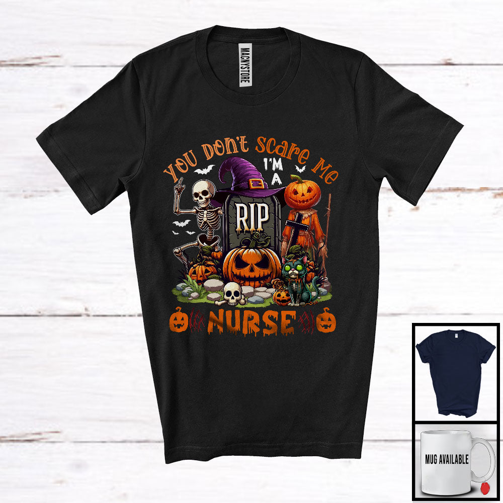 You Don't Scare Me I'm A Nurse, Creepy Halloween Skeleton Pumpkin, Proud Careers T-Shirt