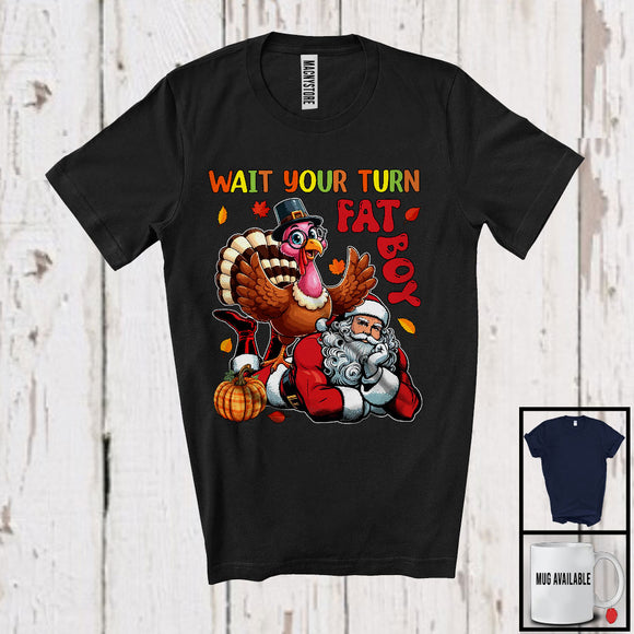 Personalized Custom Name Happy Catsgiving; Humorous Thanksgiving Pilgrim Cat Riding Turkey T-Shirt