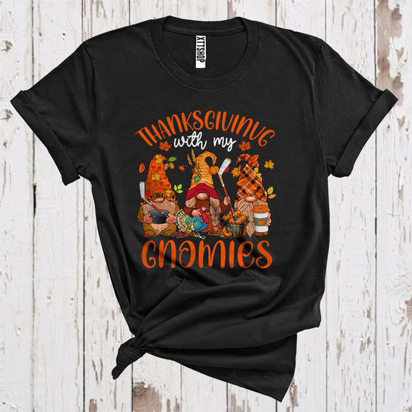 Funny Thanksgiving With My Gnomies Players Hockey Sporty Group Fall Leaves T-Shirt