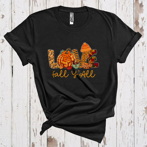 Love Fall Y'All Autumn Leaves Plaid Pumpkin Fall Scarf Thanksgiving T-Shirt