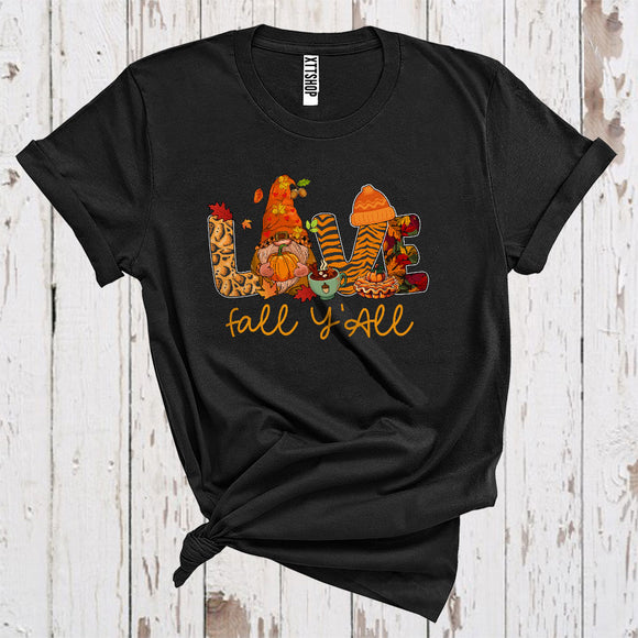 Love Fall Y'All Leopard Print Fall Scarf Thanksgiving Gnome Holding Pumpkin T-Shirt