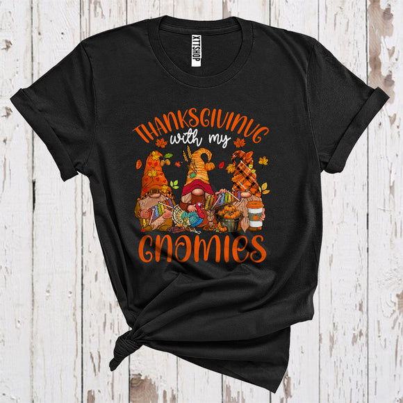 Funny Thanksgiving With My Gnomies Players Football Sporty Group Fall Leaves T-Shirt