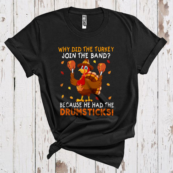 Why Did The Turkey Join Band Because He Had Drumsticks Funny Thanksgiving T-Shirt
