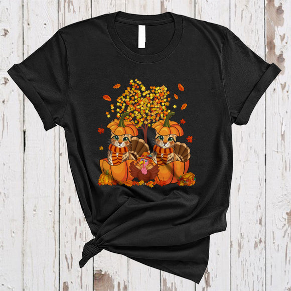 Cute Cat In Pumpkin, Lovely Cool Thanksgiving Fall Tree Turkey, Matching Animal Lover T-Shirt