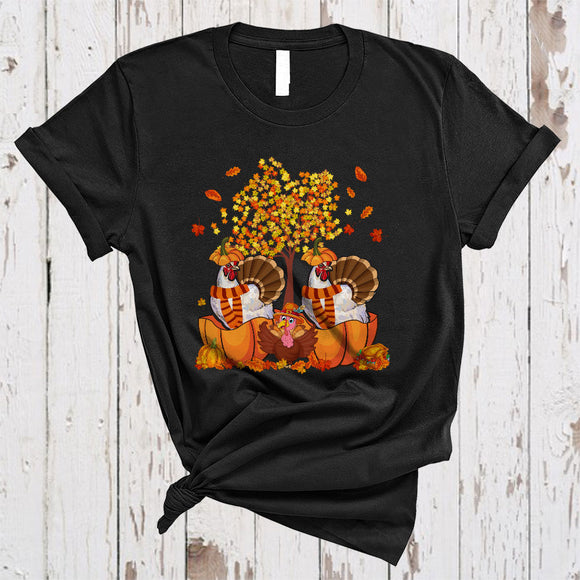 Cute Chicken In Pumpkin, Lovely Cool Thanksgiving Fall Tree Turkey, Matching Animal Lover T-Shirt