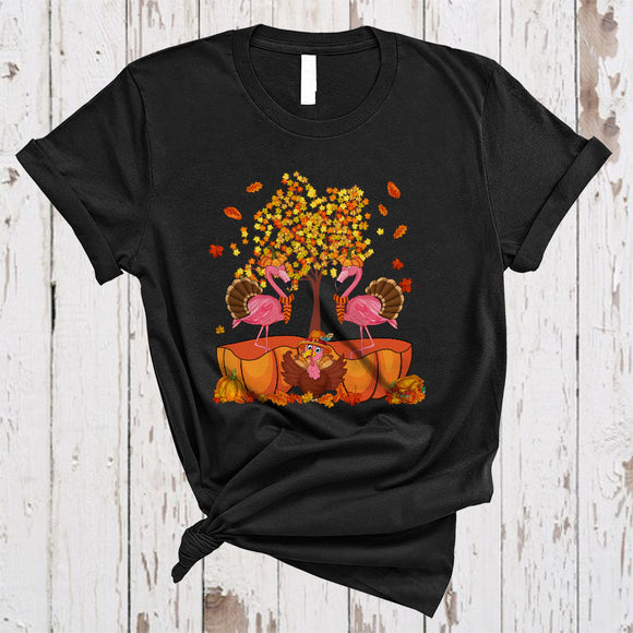 Cute Flamingo In Pumpkin, Lovely Cool Thanksgiving Fall Tree Turkey, Matching Animal Lover T-Shirt