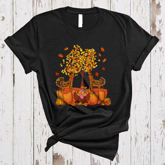 Cute Giraffe In Pumpkin, Lovely Cool Thanksgiving Fall Tree Turkey, Matching Animal Lover T-Shirt