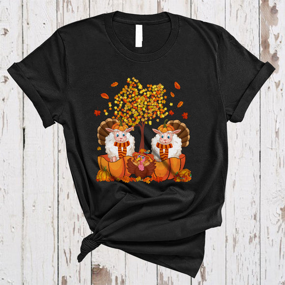 Cute Sheep In Pumpkin, Lovely Cool Thanksgiving Fall Tree Turkey, Matching Animal Lover T-Shirt