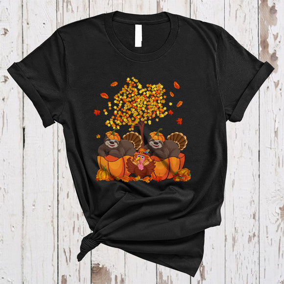Cute Sloth In Pumpkin, Lovely Cool Thanksgiving Fall Tree Turkey, Matching Animal Lover T-Shirt