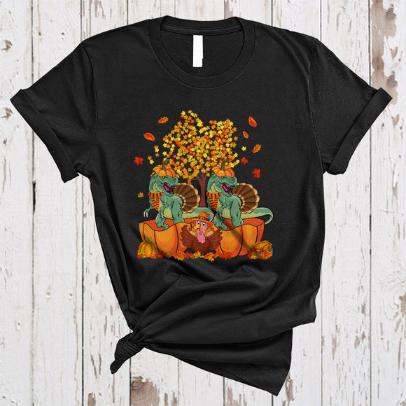 Cute T-Rex In Pumpkin, Lovely Cool Thanksgiving Fall Tree Turkey, Matching Animal Lover T-Shirt