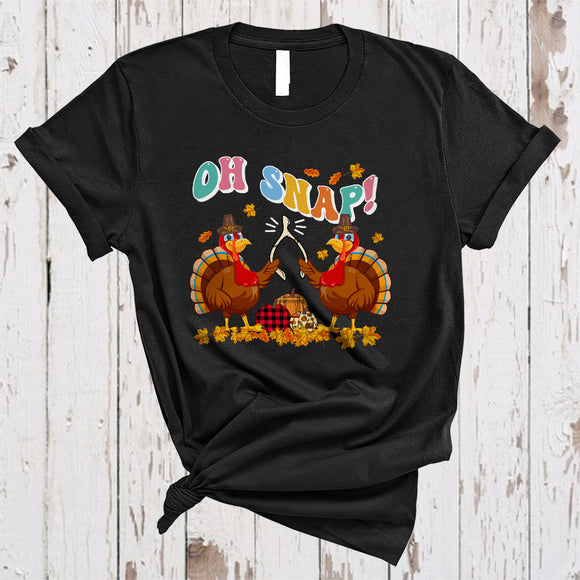 Oh Snap, Adorable Cool Thanksgiving Turkey With Wishbone, Fall Leaf Plaid Pumpkins T-Shirt