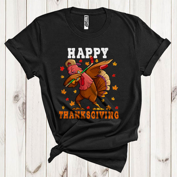 Dabbing Turkey Hockey Cool Fall Turkey Autumn Lover Matching Player Thanksgiving T-Shirt