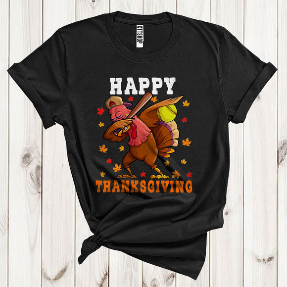 Dabbing Turkey Softball Cool Fall Turkey Autumn Lover Matching Player Thanksgiving T-Shirt