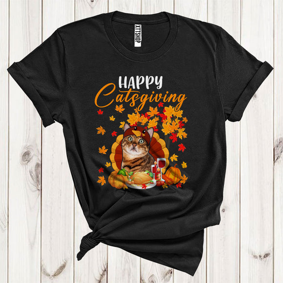 Happy Catsgiving Funny Cat Turkey With Dinner Fall Autumn Tree Pumpkin Lover Thanksgiving T-Shirt