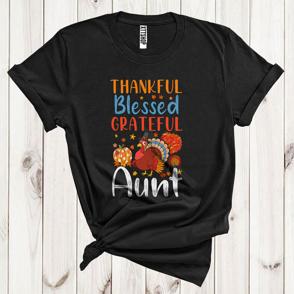 Thankful Grateful Blessed Aunt Funny Pilgrim Turkey Fall Leaf Pumpkin Lover Family Thanksgiving T-Shirt