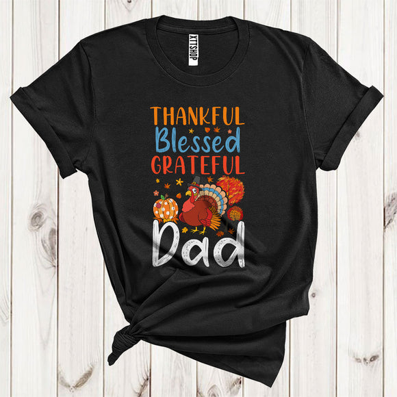 Thankful Grateful Blessed Dad Funny Pilgrim Turkey Fall Leaf Pumpkin Lover Family Thanksgiving T-Shirt