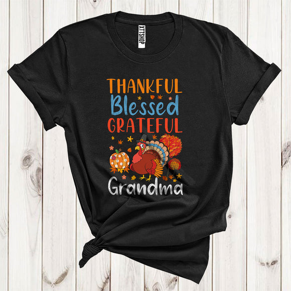 Thankful Grateful Blessed Grandma Funny Pilgrim Turkey Fall Leaf Pumpkin Lover Family Thanksgiving T-Shirt