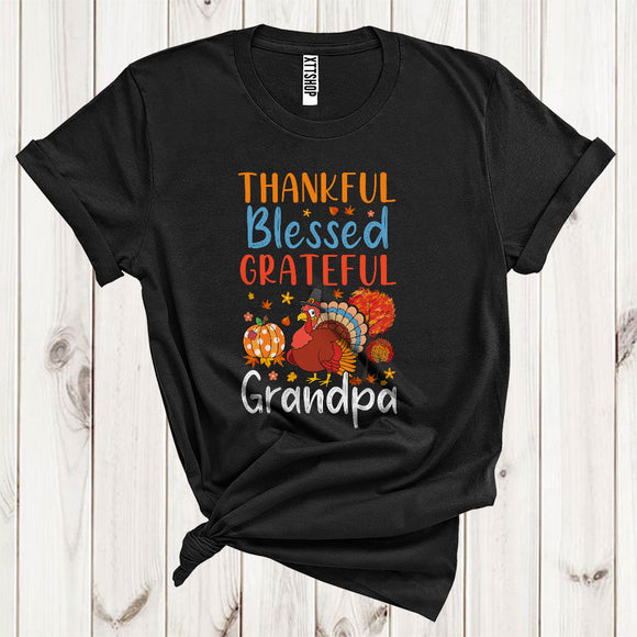 Thankful Grateful Blessed Grandpa Funny Pilgrim Turkey Fall Leaf Pumpkin Lover Family Thanksgiving T-Shirt