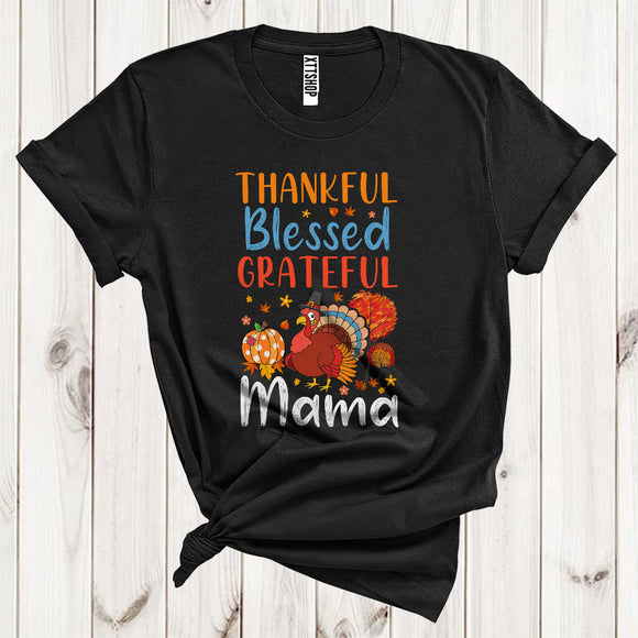 Thankful Grateful Blessed Mama Funny Pilgrim Turkey Fall Leaf Pumpkin Lover Family Thanksgiving T-Shirt