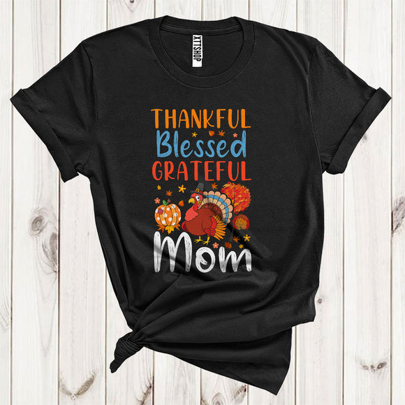 Thankful Grateful Blessed Mom Funny Pilgrim Turkey Fall Leaf Pumpkin Lover Family Thanksgiving T-Shirt