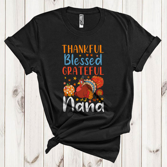 Thankful Grateful Blessed Nana Funny Pilgrim Turkey Fall Leaf Pumpkin Lover Family Thanksgiving T-Shirt