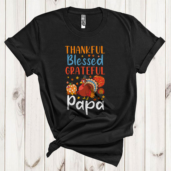 Thankful Grateful Blessed Papa Funny Pilgrim Turkey Fall Leaf Pumpkin Lover Family Thanksgiving T-Shirt