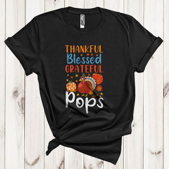 Thankful Grateful Blessed Pops Funny Pilgrim Turkey Fall Leaf Pumpkin Lover Family Thanksgiving T-Shirt