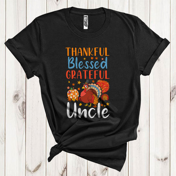 Thankful Grateful Blessed Uncle Funny Pilgrim Turkey Fall Leaf Pumpkin Lover Family Thanksgiving T-Shirt