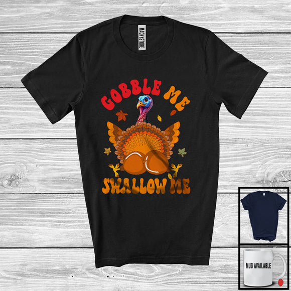 Gobble Me Swallow Me; Sarcastic Thanksgiving Turkey Lover Autumn Leaves; Adult Family T-Shirt